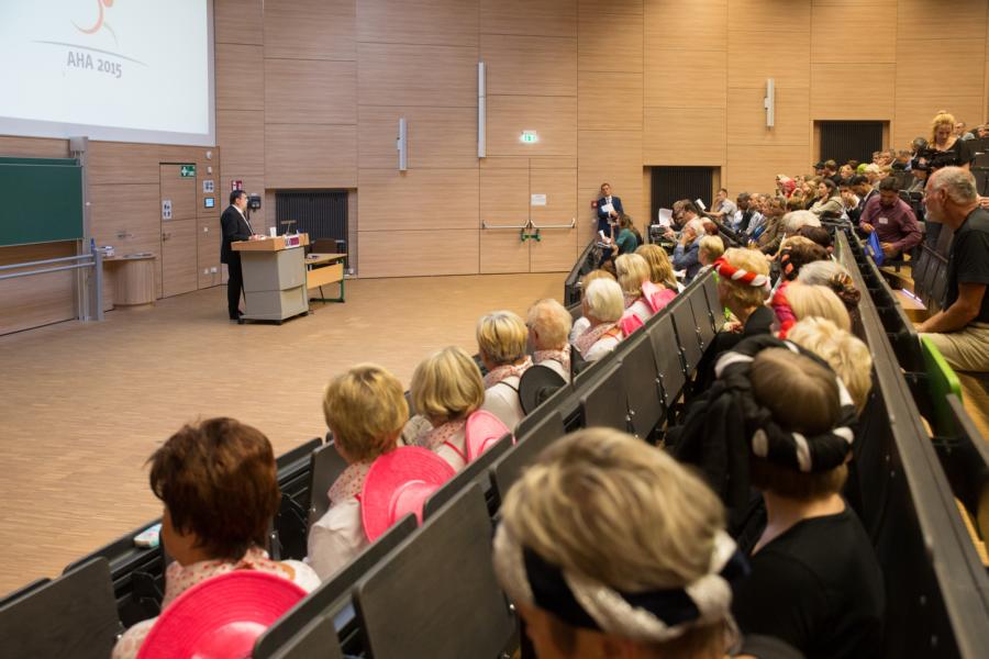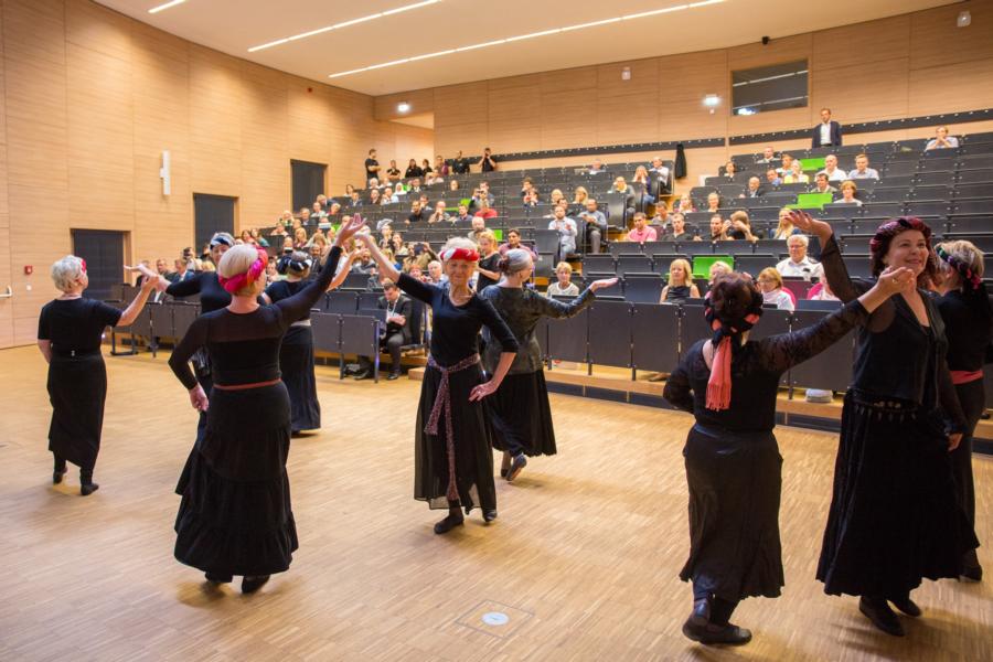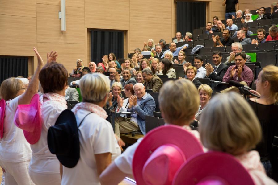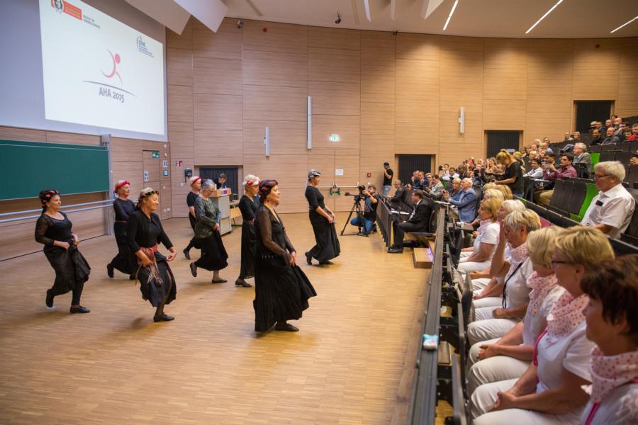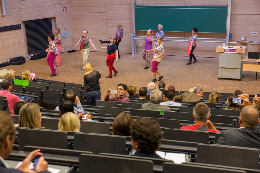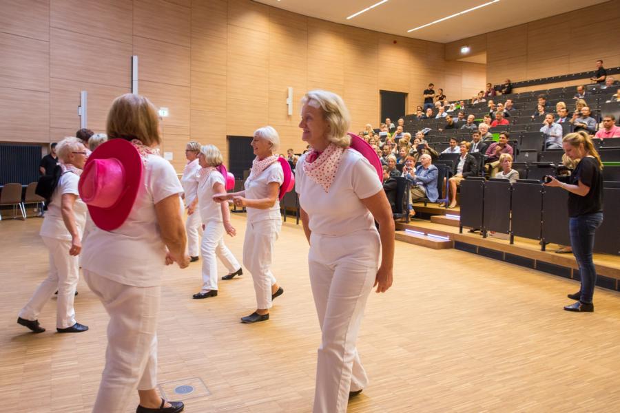 Bei der Abschluss Veranstaltung des AHA Kongresses im Hotel Herrenkrug stellte sich die Seniorentanz Gruppe von Irene Schneider mit dem eigens für diesen Anlass einstudierten Bolero vor. Es gab viel Applaus und Anerkennung auch von den jungen Kongress Teilnehmerinnen aus arabischen Ländern.